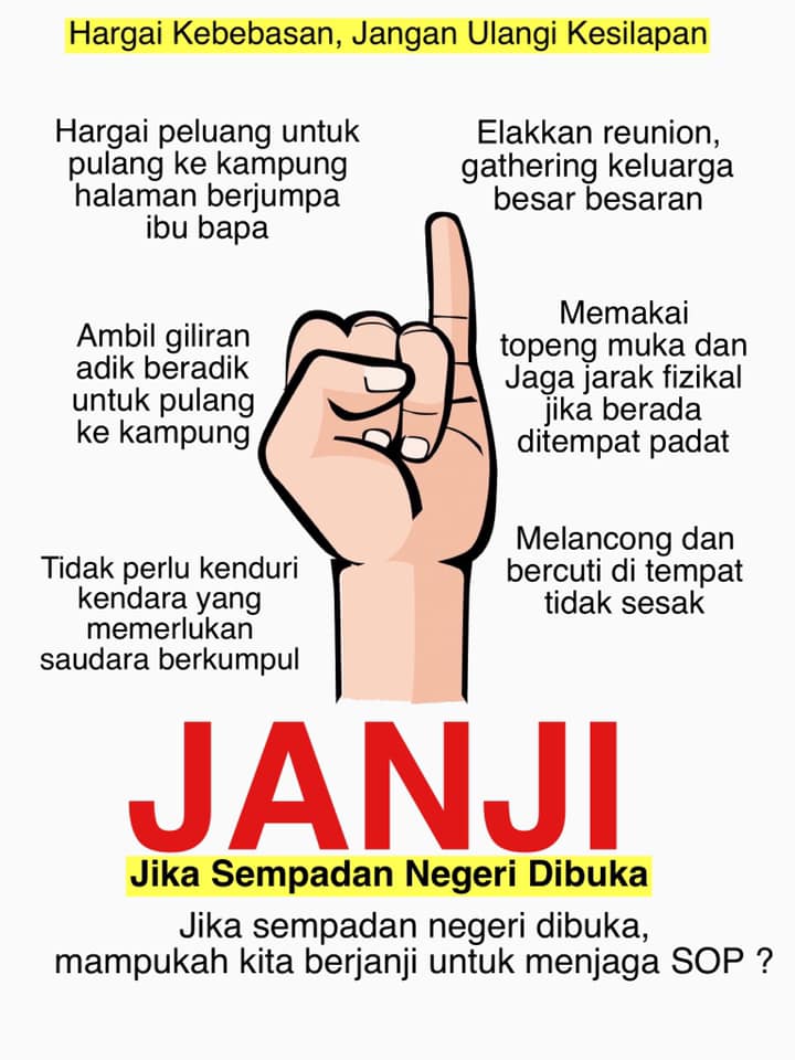 Pastinya selepas melalui fasa PKPP, PKPB dan sebagainya semestinya kita menanti pengumuman kebenaran merentas negeri selain beberapa lagi aktiviti sosial dapat dilakukan seperti sebelumnya. Tetapi perlu diingat, sebelum semua itu dibenarkan; setiap lapisan masyarakat harus memainkan peranan dan tanggungjawab masing-masing untuk mematuhi SOP sedia ada.