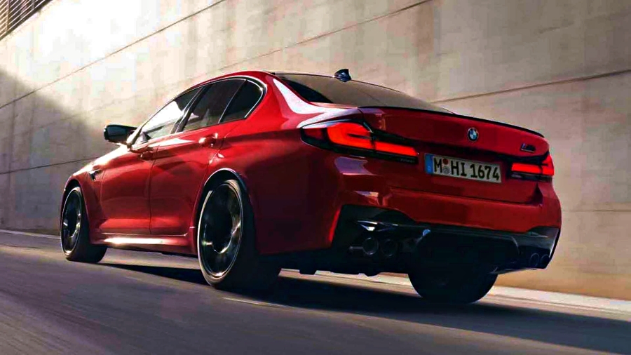 Di belakang, terdapat lampu dalam rekaan tiga dimensi serta diffuser yang menempatkan ekzos berkembar dengan muncung M spesifik. Model tahun 2021 ini juga hadir dengan rim M terkini berukuran 19 inci. M5 Competition didatangkan dengan kemasan krom hitam pada jeriji, lampu belakang, spoiler dan lencana.