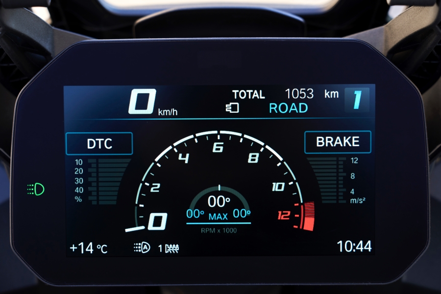 Panel instrumen yang diperbaharui pada BMW S 1000 XR memaparkan pelbagai informasi melalui skrin TFT 6.5 inci. Ia dapat dilihat dengan jelas walaupun dalam kondisi pencahayaan yang mencabar.