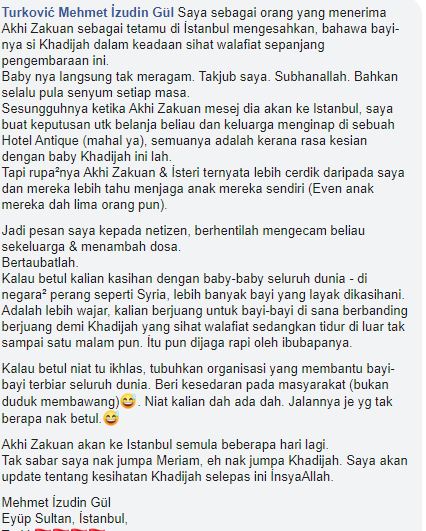 Selain itu, teman-teman Zakuan turut tampil mempertahankan pengembara tersebut selain mengesahkan bayinya, Khadijah berada dalam keadaan sihat.