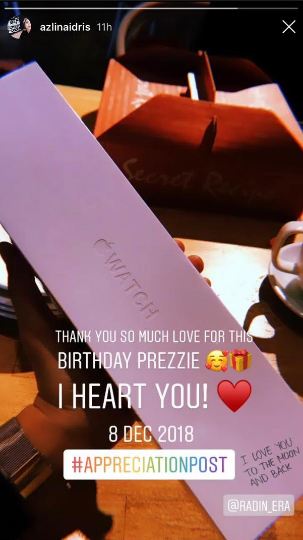 "Thank you so much, love for this birthday prezzie, I heart You," tulis Azlina.