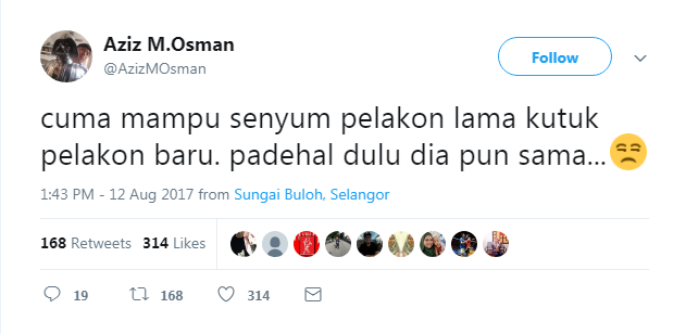 "Cuma mampu senyum pelakon lama kutuk pelakon baru. Padahal dulu dia pun sama."
