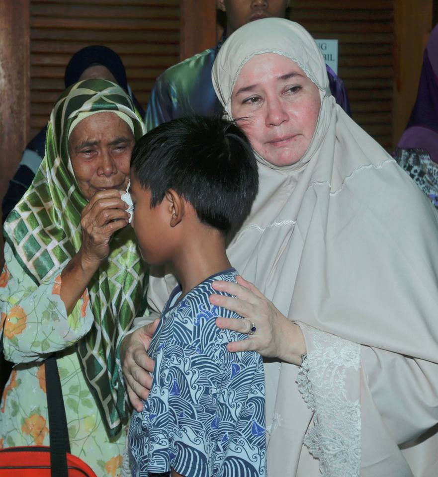 Beberapa siri foto anak sulung Mejar Yazmi Mohamed Yusof, Mikhail Adam Riaz, 11, menangis dalam dakapan Tengku Puan Pahang, Tunku Azizah Aminah Maimunah Iskandariah mengundang sebak orang ramai.