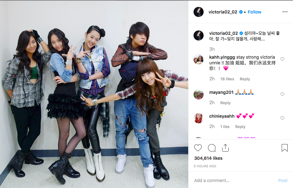 Dilansir dari AllKPop, Victoria yang menghentikan syutingnya di China untuk saat mendengar kabar kematian Sulli telah menitipkan pesan haru buat sahabatnya itu.