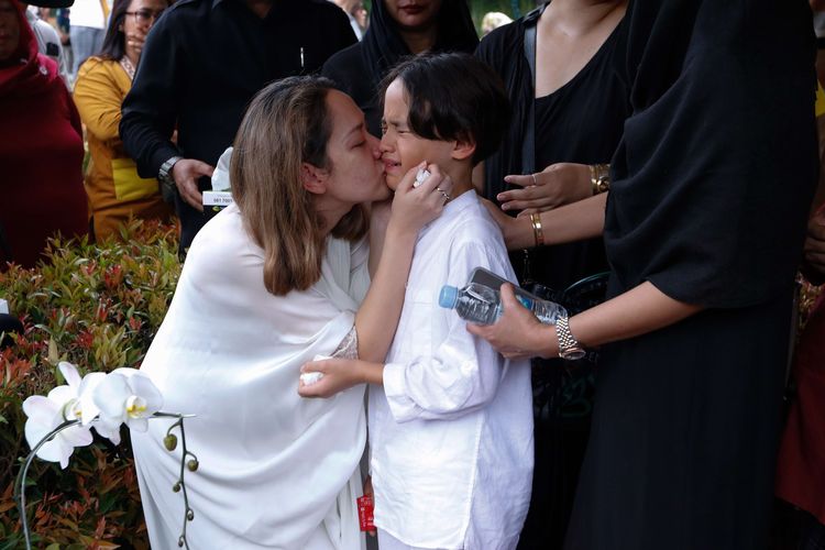 Di samping Noah, BCL terlihat berusaha tegar. Ia memeluk dan mencium Noah yang terus menangis setelah jenazah Ashraf masuk ke liang lahat.