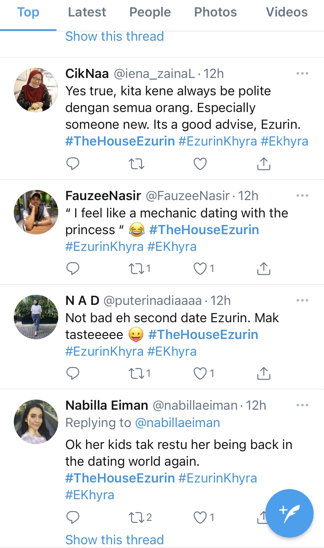 Kemudian, netizen mula berkongsi reaksi tentang Ezurin keluar berkenalan dengan dua lelaki dan nilai positif yang dikongsi Ezurin dalam episod tersebut.