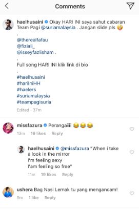 Tidak ketinggalan, aktres popular, Fazura turut meninggalkan komennya.