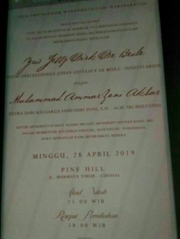 Biar keduanya masih belum angkat bicara, namun jelas segala details pernikahan mereka terkuak dalam undangan tersebut. Ia tertera nama asli kedua calon mempelai serta nama orang tua mereka.