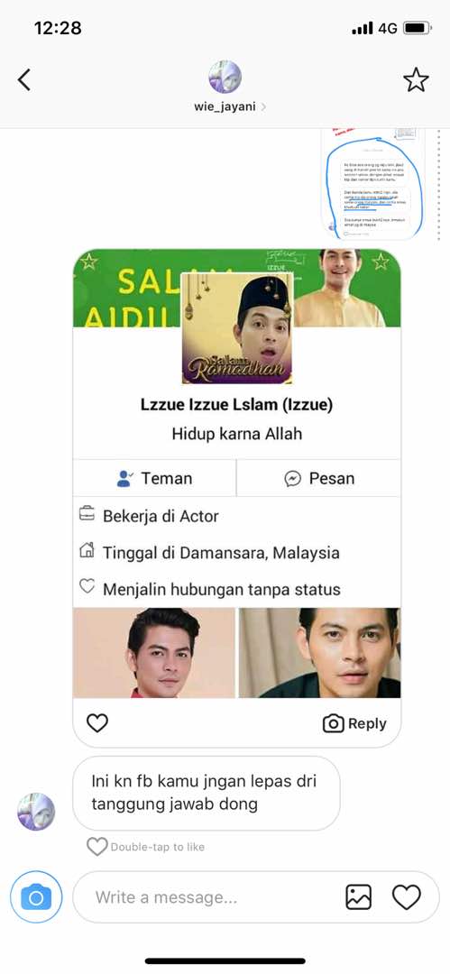 Izzue menerusi IG story mendedahkan mesej yang dihantar oleh pihak yang menuntut telekung dan ada juga mahu wang mereka dikembalikan.