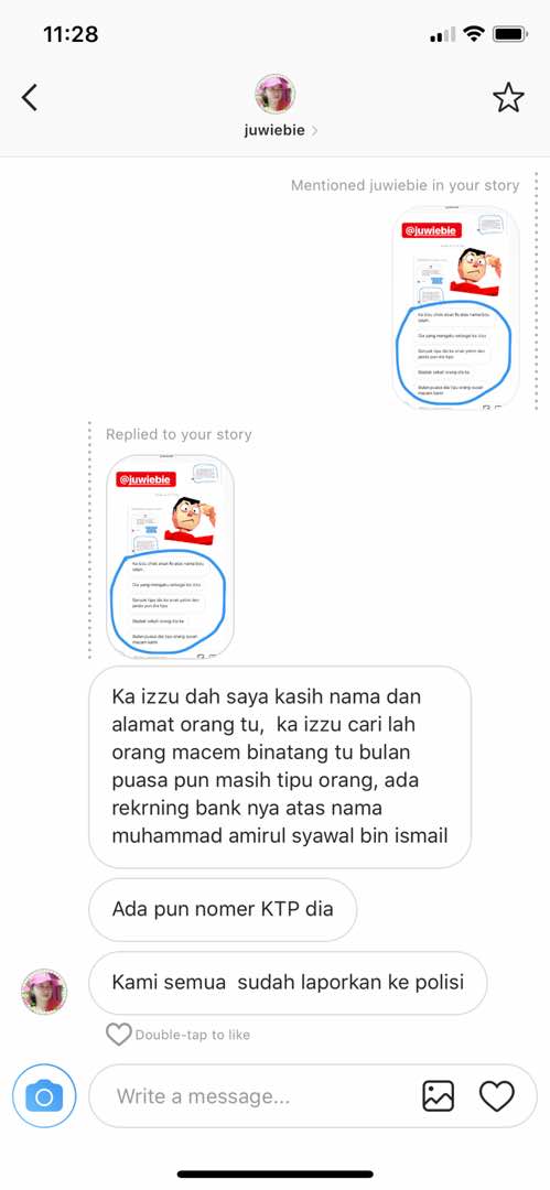 “Saya sudah meminta detail pembayaran mereka, malah saya sudah dapat nama dan nombor kad pengenalan individu yang menipu menggunakan nama saya.