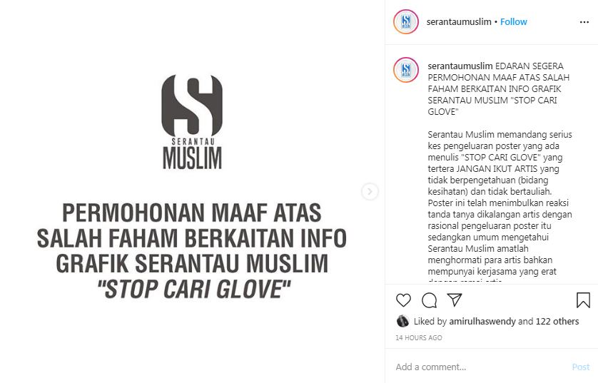 Pengendali akaun sosial Instagram Serantau Muslim memohon maaf atas tindakan memuat naik paparan infografik seolah-olah menghina golongan selebriti.