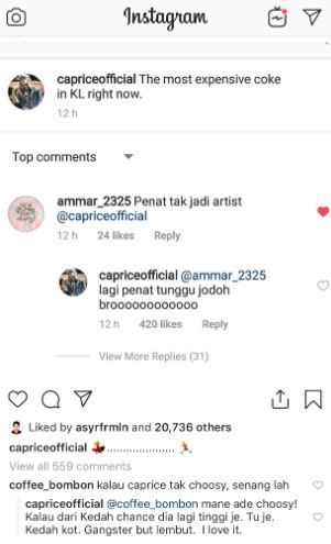 "Kalau Caprice tak memilih senang lah," tulis netizen.
