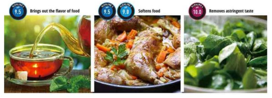 Air beralkali kebiasaanya mempunyai mineral tambahan seperti magnesium, potassium, bikarbonat dan kalsium membuatkan rasanya lebih sedap berbanding air biasa.