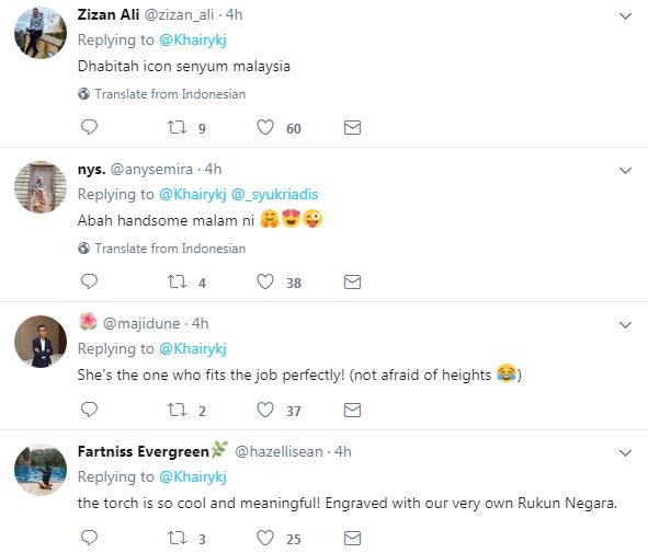 "Seperti yang saya nyatakan sebelum ini, saya adalah individu paling bertuah diberikan peluang oleh Menteri Belia dan Sukan, Khairy Jamaluddin untuk terbang tinggi dan menyalakan obor rasmi Sukan Sea ke-29.