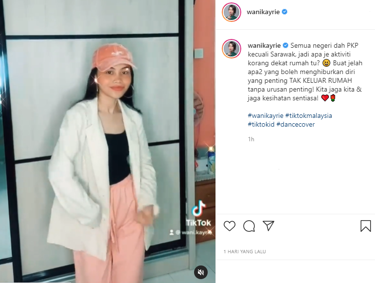 Sebelum ini, Wani mengingatkan peminatnya untuk terus kekal berada di rumah bagi mengekang wabak Covid-19.