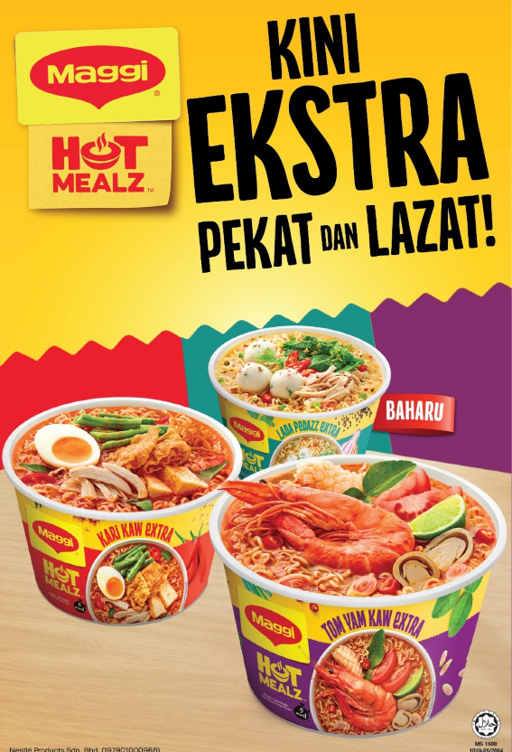 MAGGI® HotMealz Extra kini terdapat dalam 3 perisa yang EXTRA KAW & LAZAT, MAGGI® Kari Kaw Extra, MAGGI® Tom Yam Kaw Extra dan yang perisa terbaru, MAGGI® Lada Pedazz Extra! Mesti korang terliur dengan aroma dia yang EXTRA KAW!