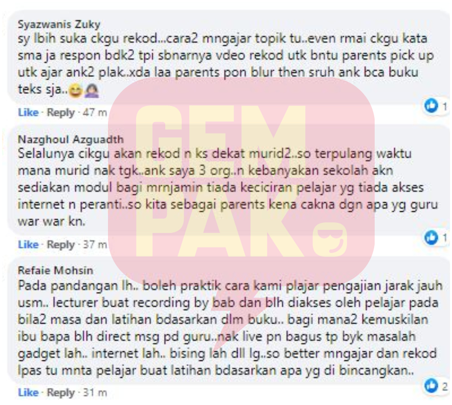 Ada juga yang bimbang tidak sempat memantau anak-anak secara serentak ketika PdPR dijalankan serta masalah akses internet.