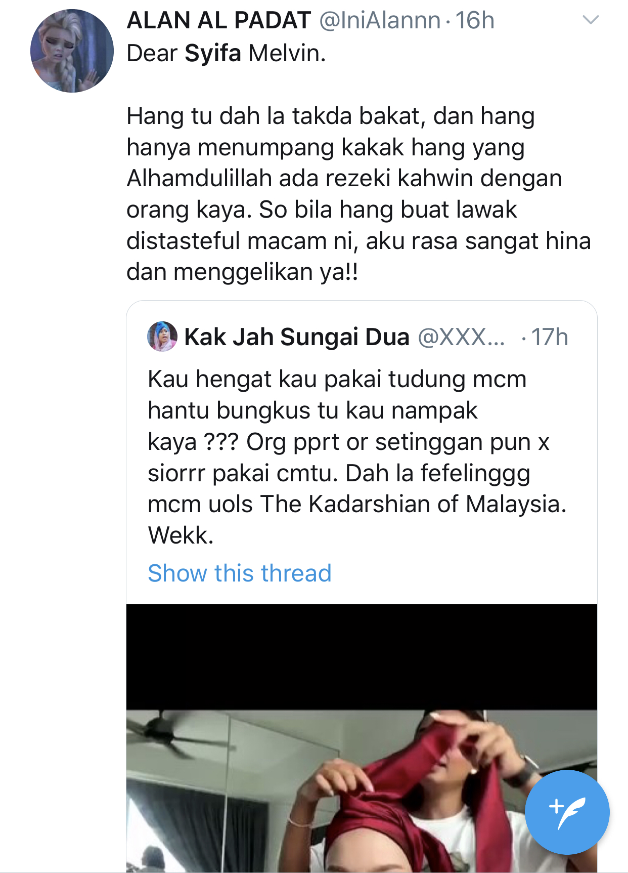 Menerusi video tutorial turban Syifa bersama seorang jurusolek, jelas kedengaran adik kepada Syatilla Melvin itu membandingkan gayanya dengan penghuni rumah Projek Perumahan Rakyat Miskin Tegar (PPRT).
