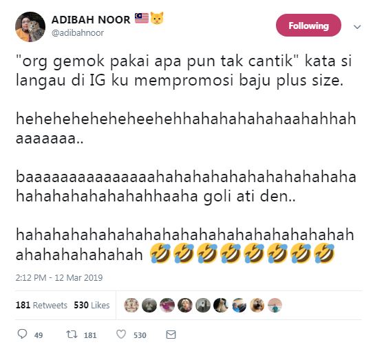 "'Orang gemok pakai apa pun tak cantik'. Kata si langau di IG ku mempromosi baju plus size.