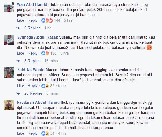 Susulan kes seorang penuntut Universiti Pertahanan Nasional Malaysia (UPNM) meninggal dunia akibat didera dengan seterika wap, pengguna laman sosial mahu pembuli dikenakan hukuman setimpal.