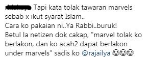 Namun, pelakon itu mendedahkan dia terpaksa menolak tawaran tersebut berikutan adegan yang menyentuh sensitiviti Islam.