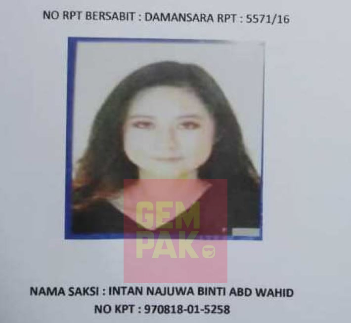 Menurut jurucakap polis, Intan Najuwa memegang kad pengenalan bernombor 970818-01-5258.