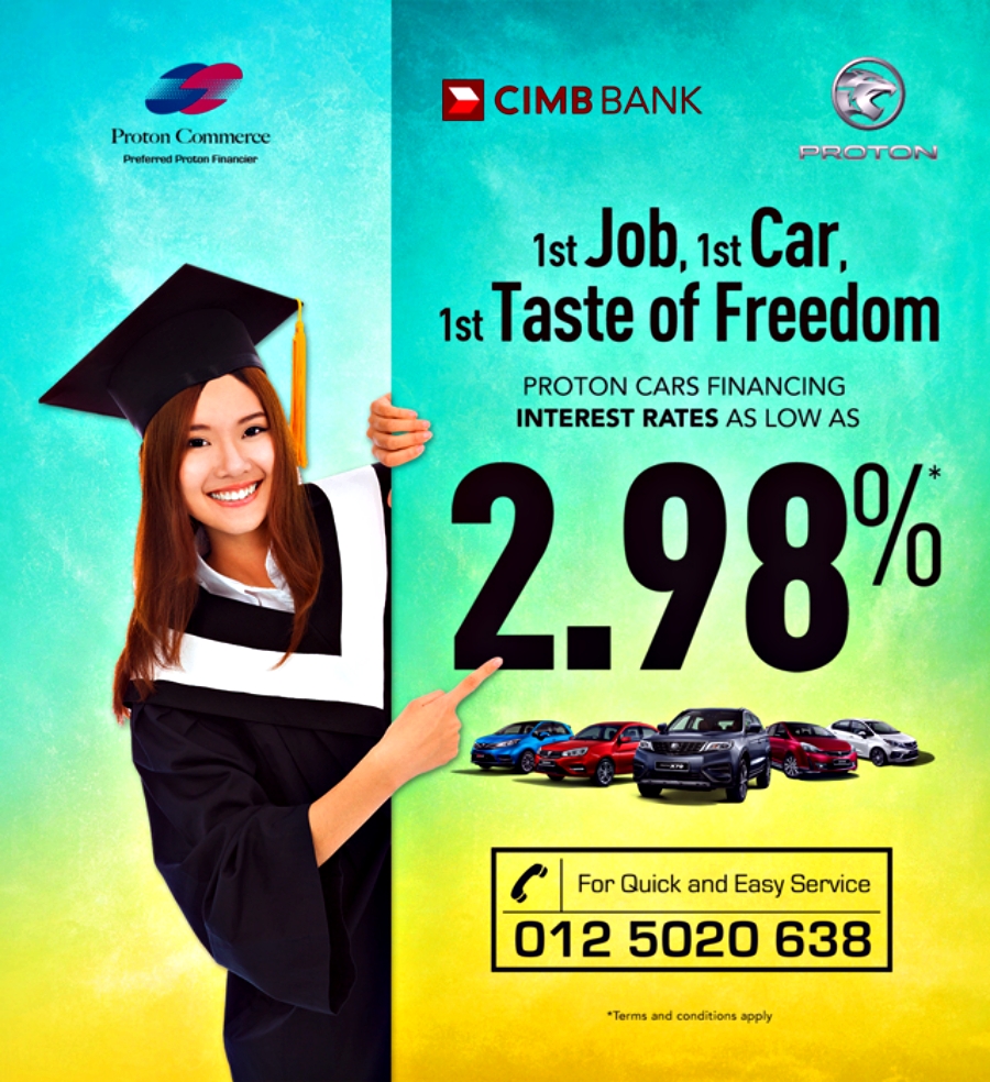 Proton Commerce Sdn Bhd (PCSB), sebuah syarikat di bawah Kumpulan PROTON menyediakan peluang kepada graduan baharu untuk memiliki kereta pertama dengan kadar pinjaman Sewa Beli (HP) yang rendah.