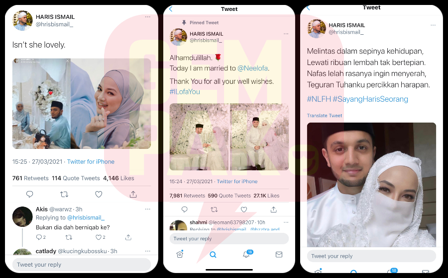 Terdahulu, PU Riz atau nama sebenarnya Muhammad Haris Mohd Ismail, 26 sah bergelar suami kepada Noor Neelofa (Neelofa) Mohd Noor dengan sekali lafaz.