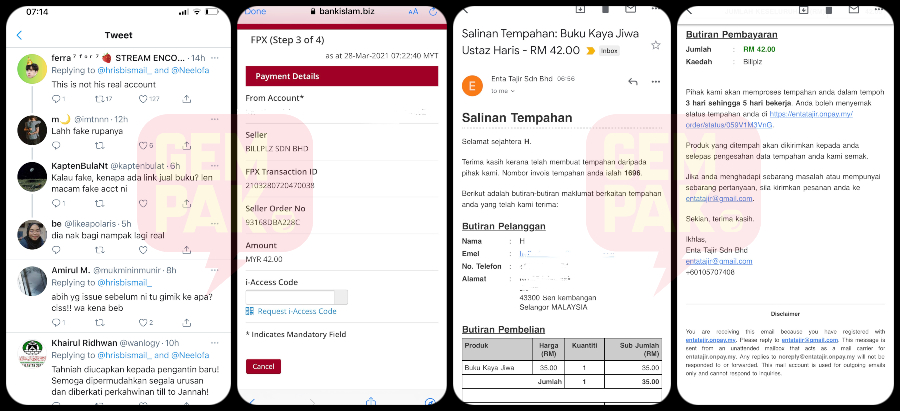 Gempak sempat mengakses pautan tersebut yang membawa pembeli ke laman sesawang entatajir.onpay.my dan mendapati pembayaran untuk setiap pembelian buku, akan dimasukkan ke syarikat yang didaftarkan atas nama syarikat Billplz Sdn Bhd.