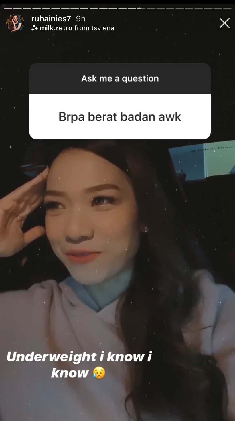 Ruhainies memberikan respons sedemikian sebagai menjawab pertanyaan daripada pengikutnya di Instagram yang mahu mengetahui berat badannya.