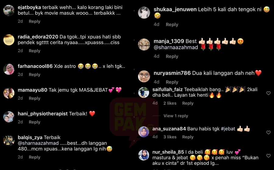 "Terbaik Sharnaaz. Best! Dah langgan 480..macam tak puas, kena langgan lagi ni.