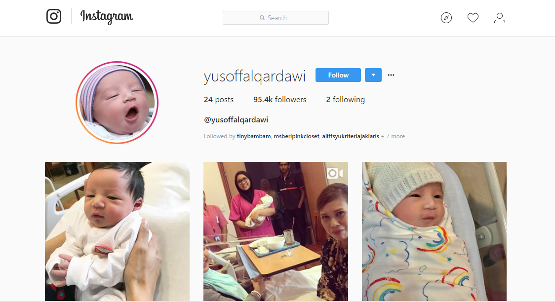 Sebaik sahaja bayinya dilahirkan, Aliff Syukri telah mewujudkan sebuah akaun Instagram (IG) atas nama @yusoffalqardawi.