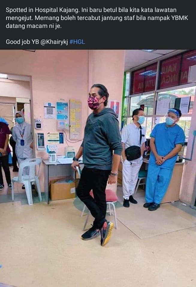 Tular sejak petang tadi apabila Yang Berhormat Menteri Kesihatan Khairy Jamaluddin melakukan lawatan mengejut ke Hospital Kajang. Tanpa protokol rasmi, tanpa kehadiran Ketua Pengarah Kesihatan, pihak tertinggi pengurusan hospital, beliau tiba hanya ditemani seorang pegawai.