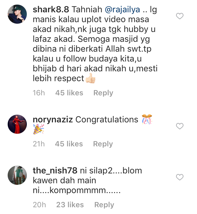 Di samping ucapan tahniah daripada peminat dan pelayar media sosial, terselit juga komen-komen negatif daripada pihak yang kurang senang dengan foto yang dimuat naik Ilya.