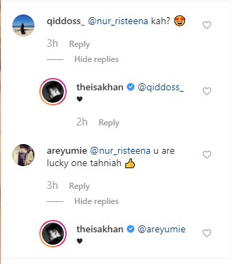 Ini kerana, Isa membalas komen pengikutnya dengan emotikon berbentuk hati dalam setiap pertanyaan yang mengaitkan nama Risteena.