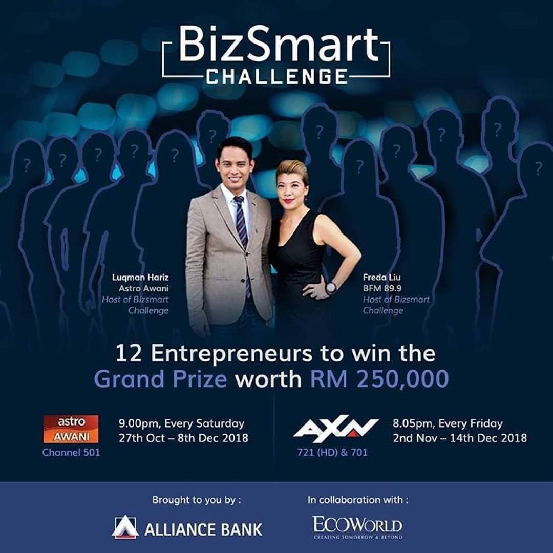 Rancangan realiti BizSmart Challenge dibawakan kepada anda oleh Alliance Bank dengan kolaborasi bersama EcoWorld dan kerjasama Astro Awani serta BFM89.89. BizSmart Challenge memaparkan 12 peserta yang mempunyai perniagaan kecil dan sederhana menyahut cabaran perniagaan sebenar.