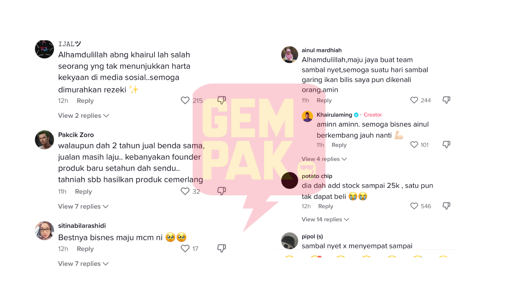 Dalam masa sama, ramai juga menyampaikan ucapan tahniah kepada Aming di atas perniagaan sambal dan mendoakan rezeki usahawan itu diluaskan.