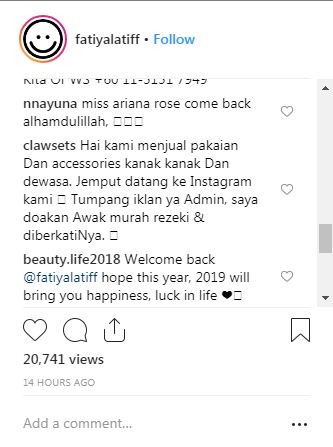 Menjengah di ruangan komen, rata-rata pengikut Fathia menunjukkan rasa teruja dan mengucapkan selamat kembali kepadanya, ada juga yang masih rindu melihat lakonannya dalam drama bersiri Ariana Rose.