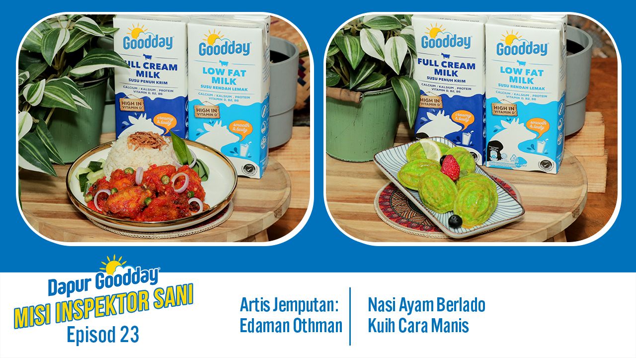 - Program realiti drama memasak 'Dapur Goodday: Misi Inspektor Sani' kembali dengan episod ke-23 yang menampilkan menu Nasi Ayam Belado dan Kuih Cara Manis.