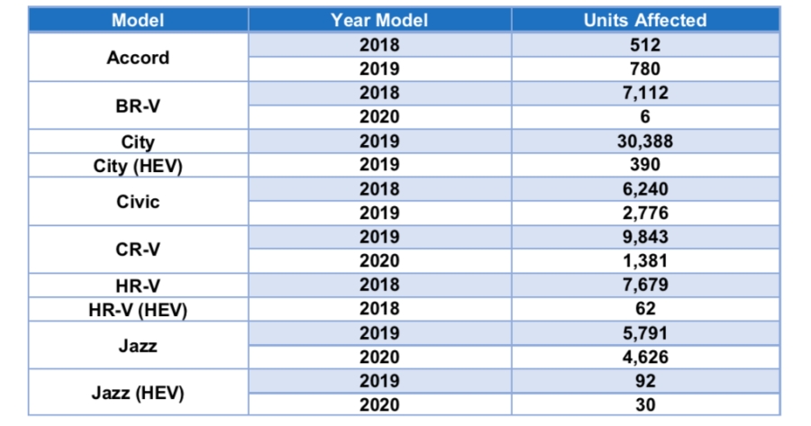 Semua pemilik model yang terjejas akan dihubungi Honda melalui surat pemberitahuan. Bagaimanapun, pelanggan boleh membuat pengesahan sama ada kenderaan mereka tertakluk di bawah kempen recall terbabit dengan menggunakan aplikasi HondaTouch.