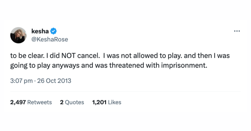 In 2013, American pop star Kesha — known for hits like Tik Tok and Blow — found herself banned from performing in Malaysia just a day before her scheduled concert in KL.