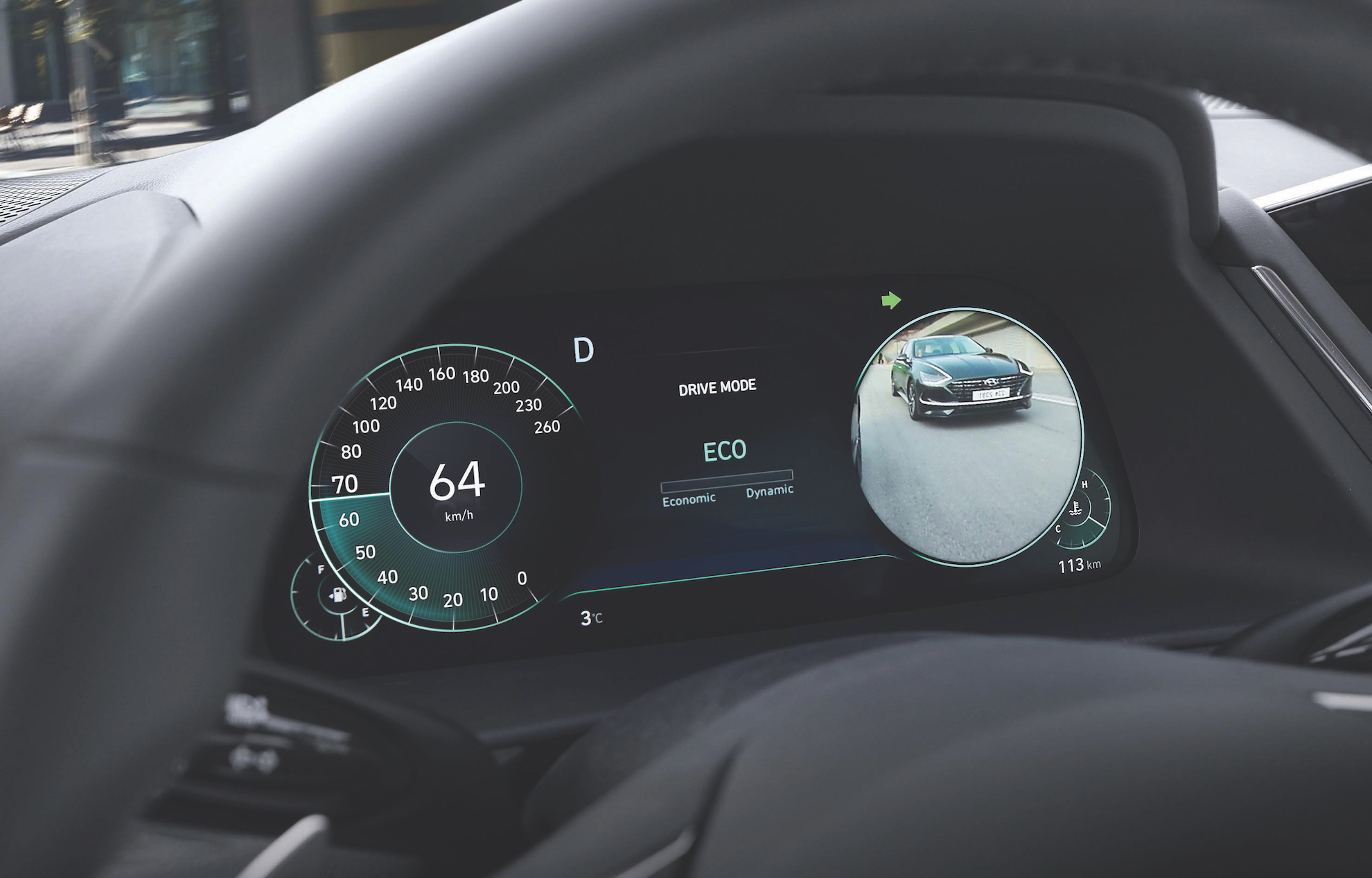 In addition to the standard safety systems, the Sonata is also equipped with the Blind-Spot View Monitor that fits cameras on the wing mirrors. These cameras activate when the turn signals are activated, and displays the view of the corresponding side on the instrument cluster. Audio and visual alerts will blare if a vehicle is detected in the blind spot.
