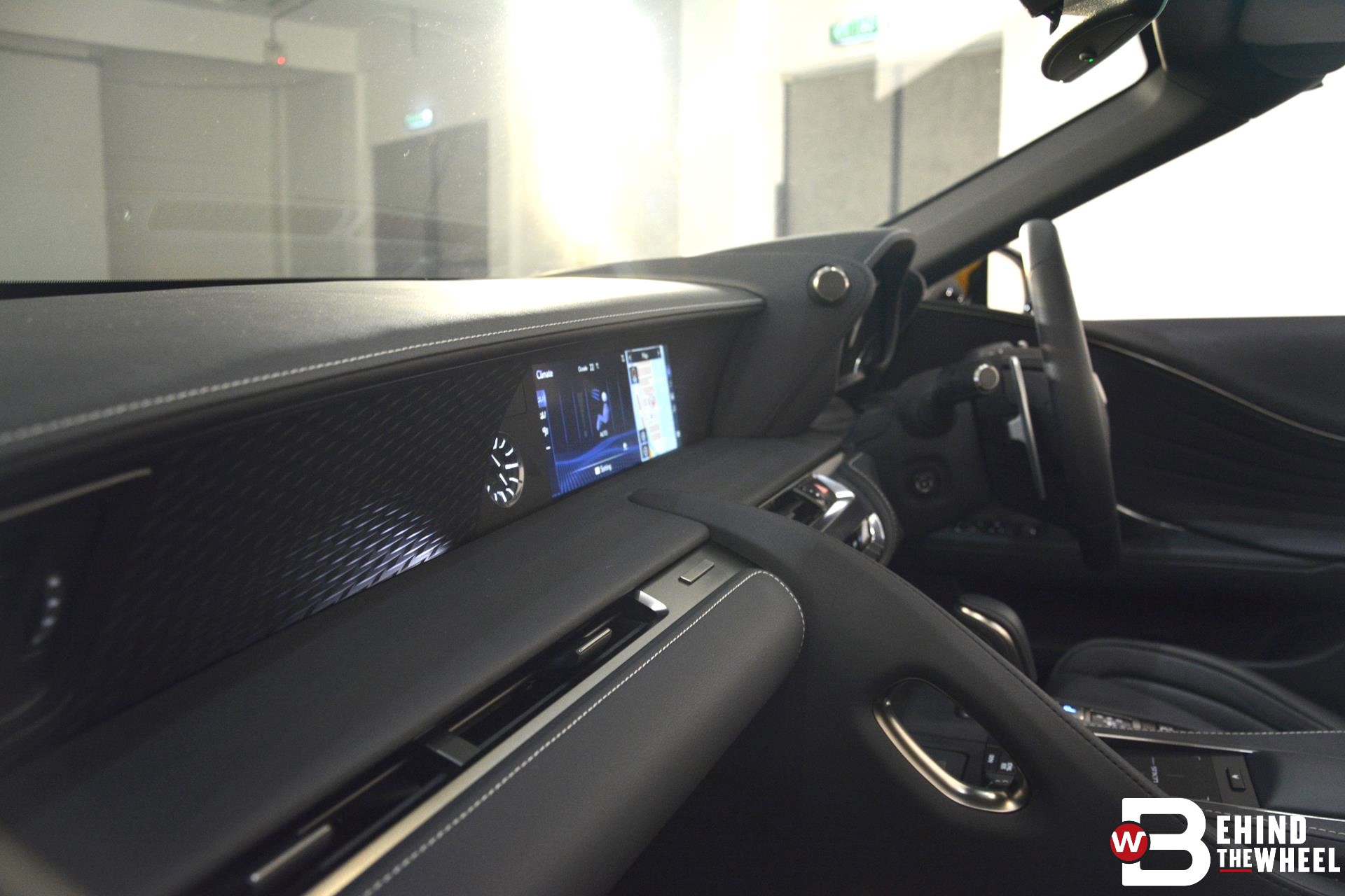 Apart from the soft-top, the LC 500 Convertible and Coupe are as identical as can be. So, don’t expect any surprises in the cabin apart from the transparent wind deflector between the seats that functions to reduce wind buffeting up to 60kph.