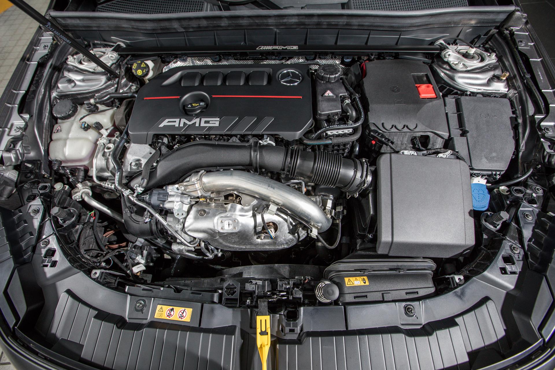 Power comes from the same engine you’ll find in the Mercedes-AMG 35 range of vehicles; the 2.0-litre turbo four making 302hp and 400Nm of torque. Power hits all four wheels via the AMG Performance 4Matic system with an an eight-speed AMG Speedshift DCT dual-clutch transmission in sandwiched in between.