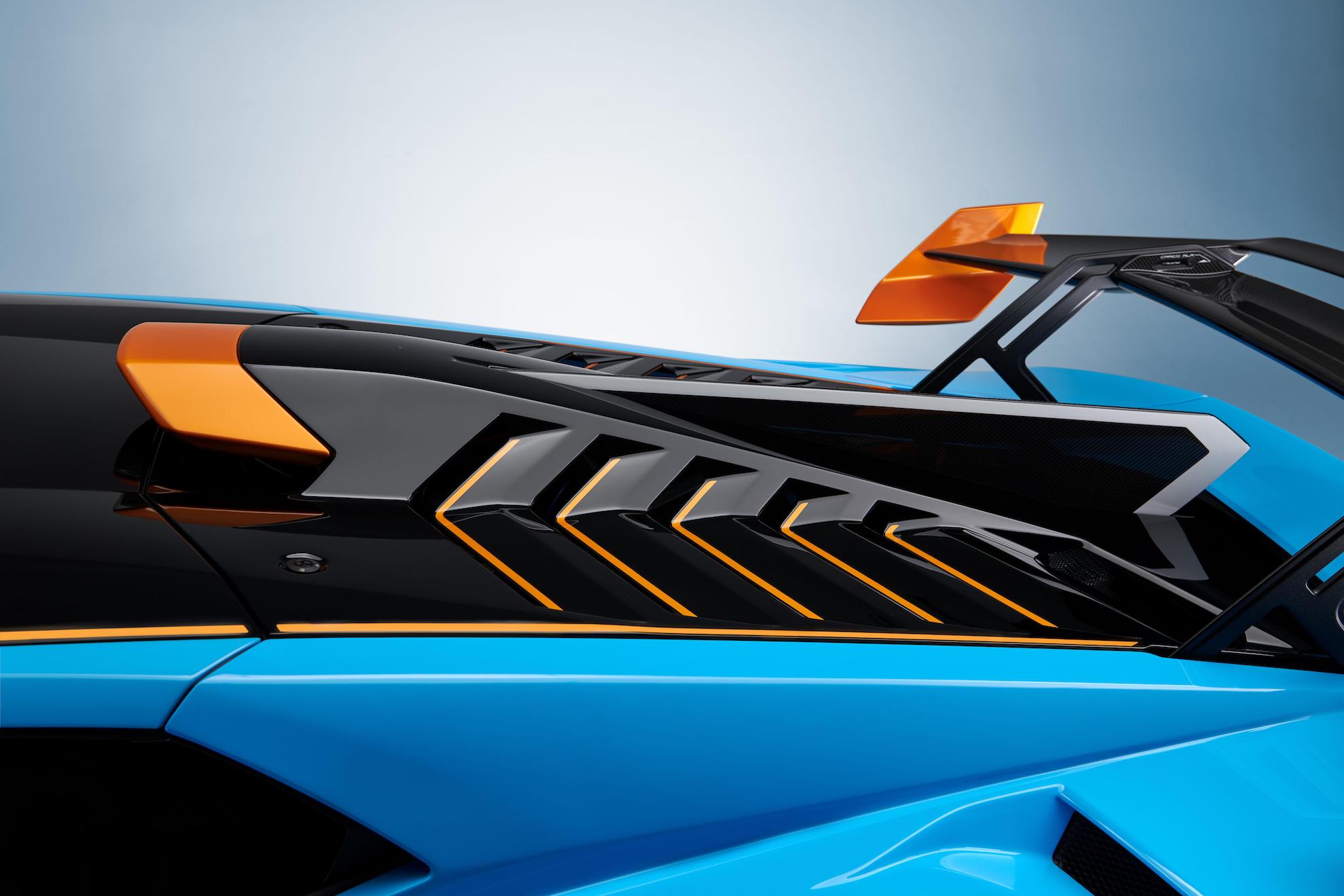 In collaboration with Lamborghini's R&D department, their Centro Stille design department has created what is dubbed as a 'Confango', a one-piece front fascia comprising the hood, fenders, front bumper and integrated front splitter. Made entirely out of carbon fibre, the 'Confango' is entirely race-derived, focusing on lightness and ease of access. Simultaneously, the louvres, splitters and air ducts manage airflow over and under the front for increased downforce. If you need some front storage, this really isn't the car for you.