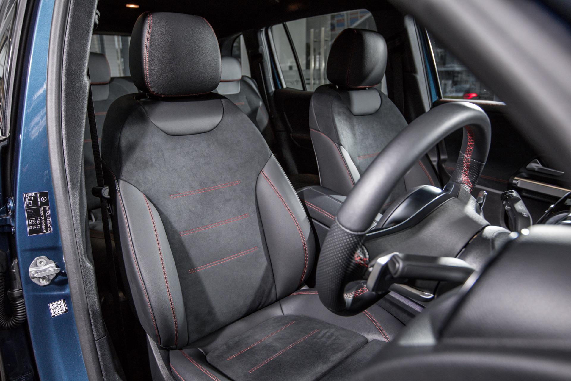Kit count in the GLB250 is understandably more and includes carbon-structure trim, a Nappa leather steering wheel, sports seats, Artico leather/Dinamica microfibre upholstery, ambient lighting, AMG floor mats and a remote engine start function.