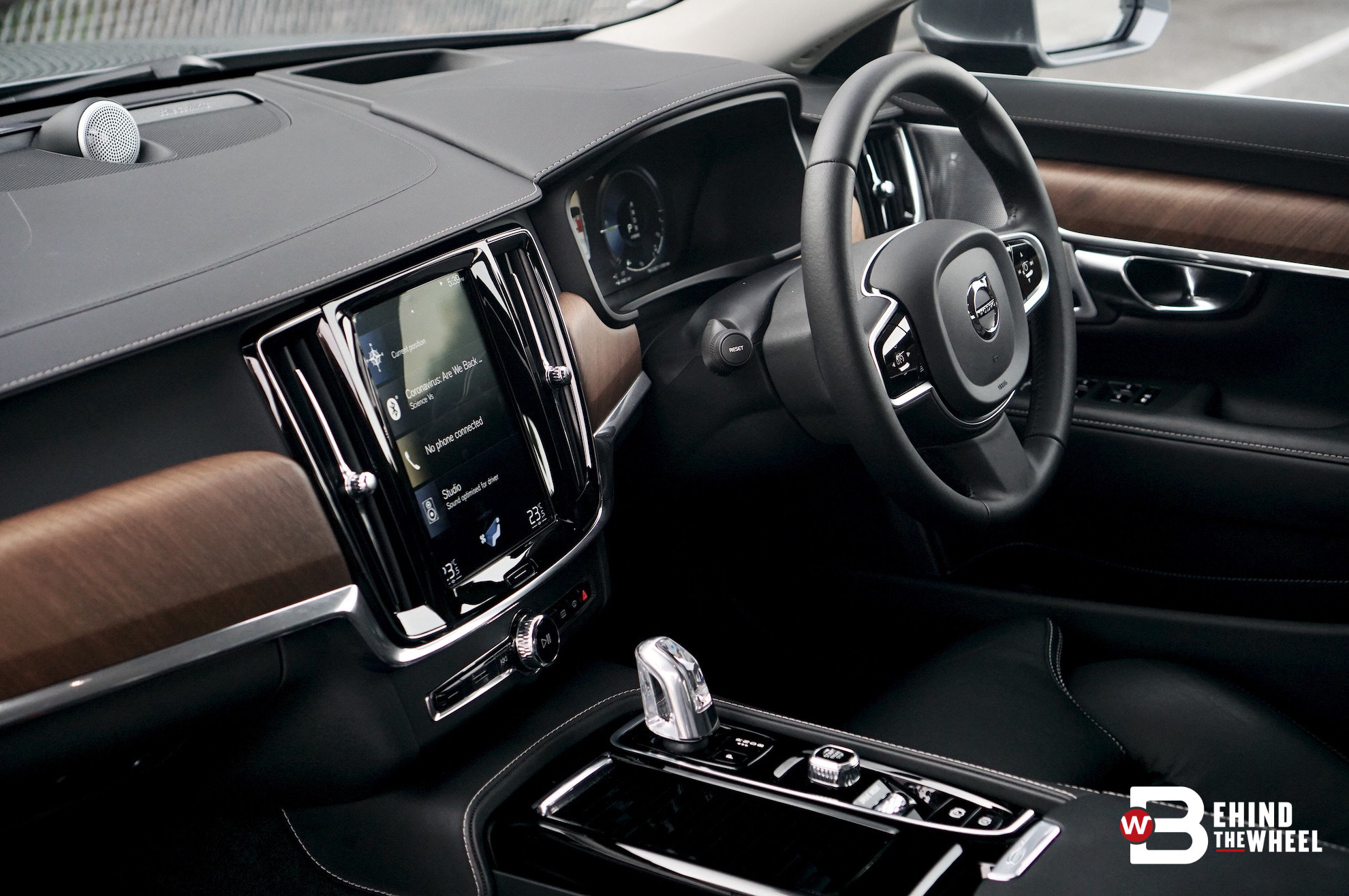 Standing tall and proud in the dashboard is the portrait-oriented Sensus Connect nine-inch touchscreen, which is the only way to interface with a majority of the S90’s features. You’re greeted with a simple ‘home screen’ but swipe right, and a deluge of icons fill the display. Although the icons are arranged logically, it isn’t as intuitive as Volvo would have hoped. Your attention is still required to avoid making mistakes in engaging the car’s various functions — like accidentally adjusting the passenger’s seat instead of charging the car’s battery.