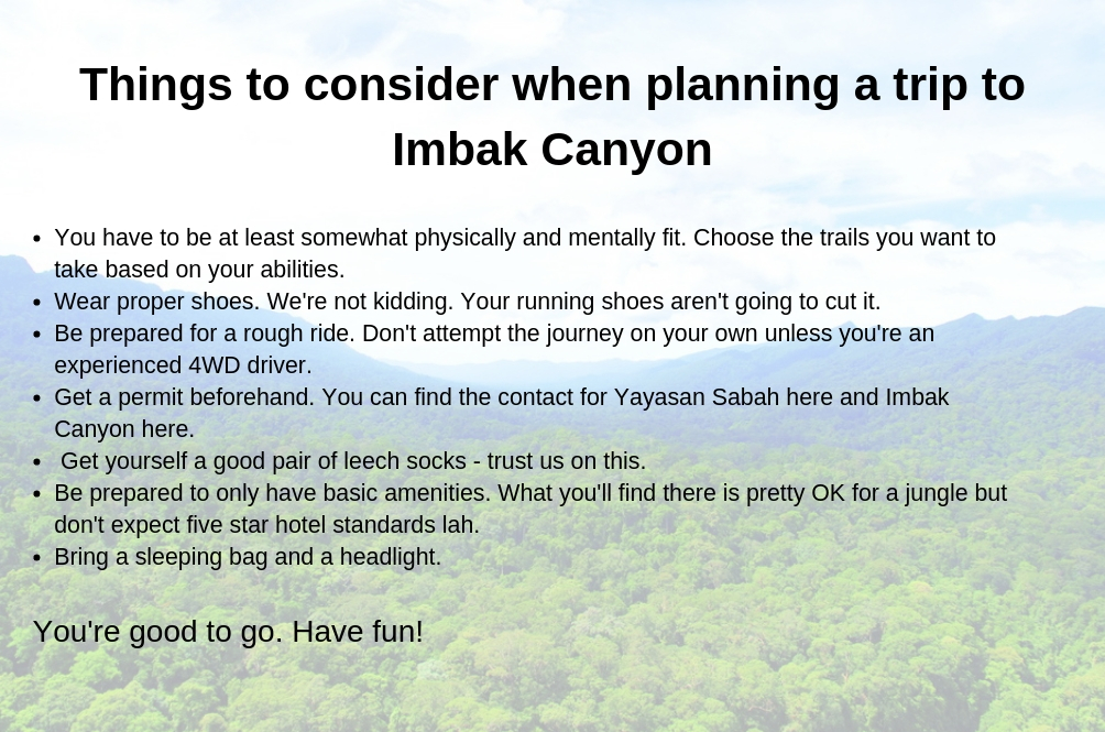 Technically, Imbak Canyon is not that far from the nearest airport. It's about 300km from Kota Kinabalu and 220km from Sandakan (yes, it's faster to get there from Sandakan).