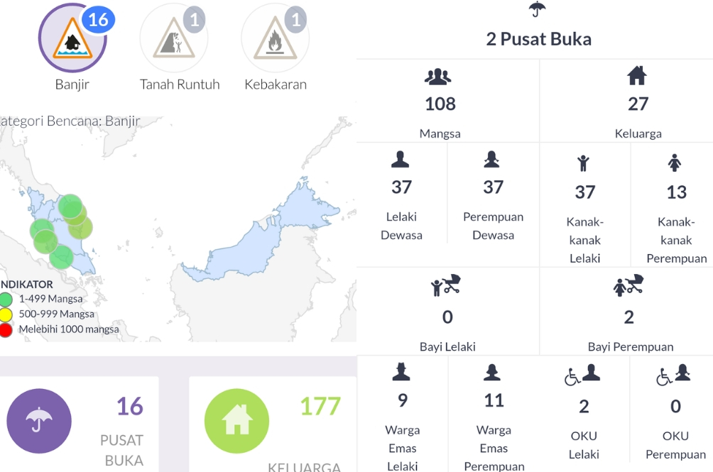 Secara mudahnya, aplikasi ini memaparkan maklumat terkini berkenaan bencana banjir, ribut petir, kebakaran, statistik mangsa bencana dan pusat pemindahan.