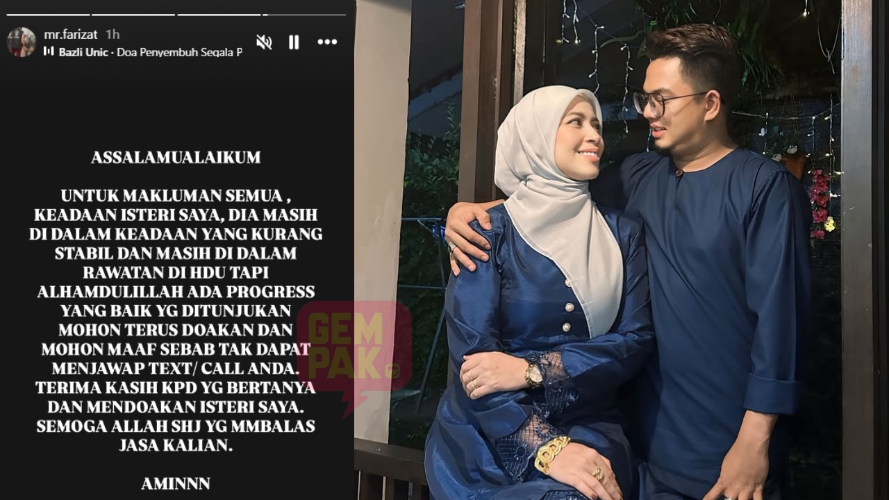 Terdahulu, Farizat berkongsi kemas kini di Instagram keadaan penyanyi lagu Candak itu yang sedang menerima rawatan di Unit Rawatan Ketergantungan Tinggi (HDU) namun tidak memaklumkan punca sebenar sakit isterinya itu.